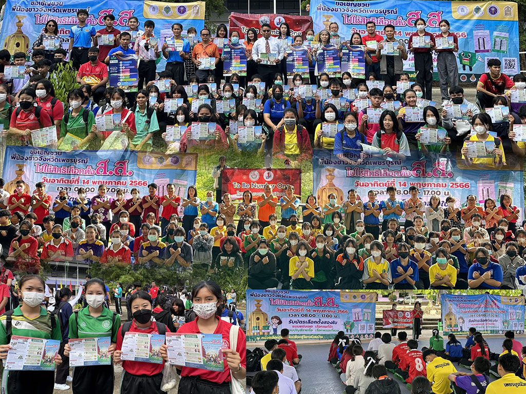 | นายสิทธิโชค ทองโคตร ผู้อำนวยการโรงเรียนเพชรบูรณ์วิทยา คณะครู และนักเรียน ร่วมรณรงค์และสร้างความเข้าใจในการใช้สิทธิ์เลือกตั้งสมาชิกสภาผู้แทนราษฎร ในวันที่ 14 พ.ค. 2566 ( #ส่งเสริมการปกครองในระบอบประชาธิปไตยอันมีพระมหากษัตริย์ทรงเป็นพระประมุข) |