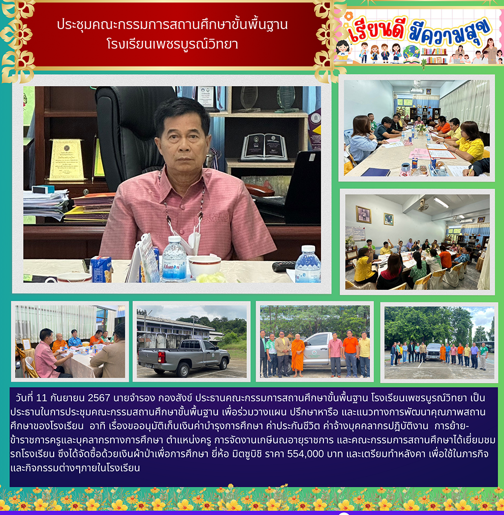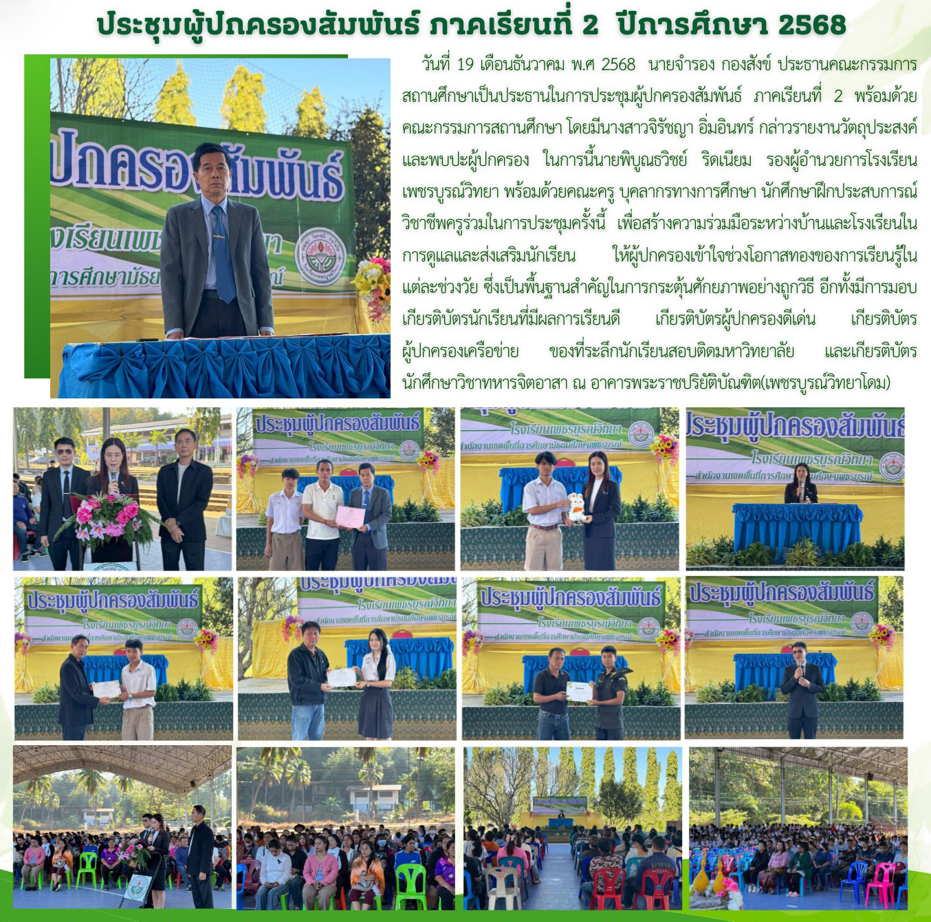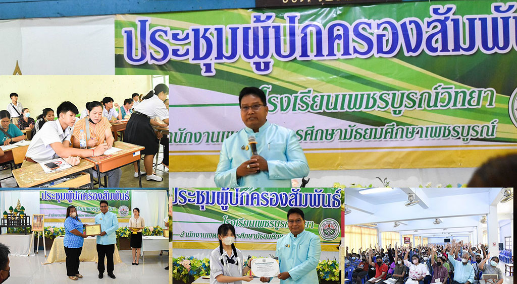 | 10 ก.พ.2566 โรงเรียนเพชรบูรณ์วิทยาจัดประชุมผู้ปกครองนักเรียนครั้งที่ 2 ปีการศึกษา 2565 โดยนายสิทธิโชค ทองโคตร ผู้อำนวยการโรงเรียนเพชรบูรณ์วิทยาเป็นผู้กล่าวรายงานต่อ ท่าน ผอ.จำรอง กองสังข์ ประธานคณะกรรมการสถานศึกษาโรงเรียนเพชรบูรณ์วิทยา เพื่อเป็นการสื่อสานประสานความร่วมมือระหว่าง โรงเรียน ผู้ปกครอง ครู นักเรียน และชุมชน ในการดูแลช่วยเหลือนักเรียนอย่างรอบด้าน | |