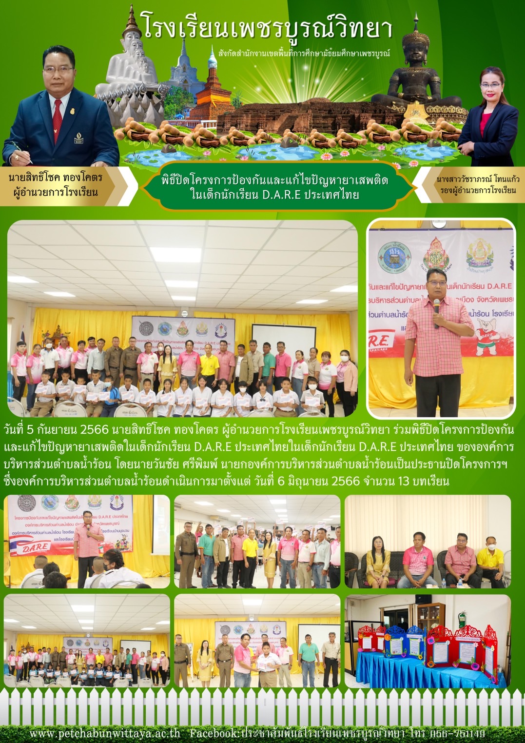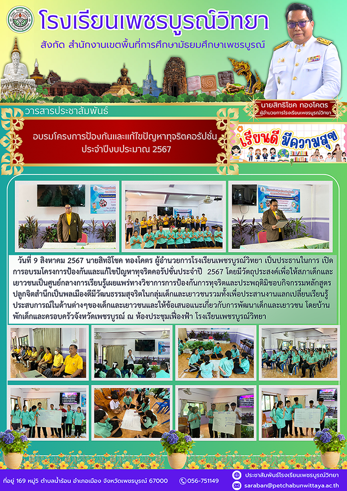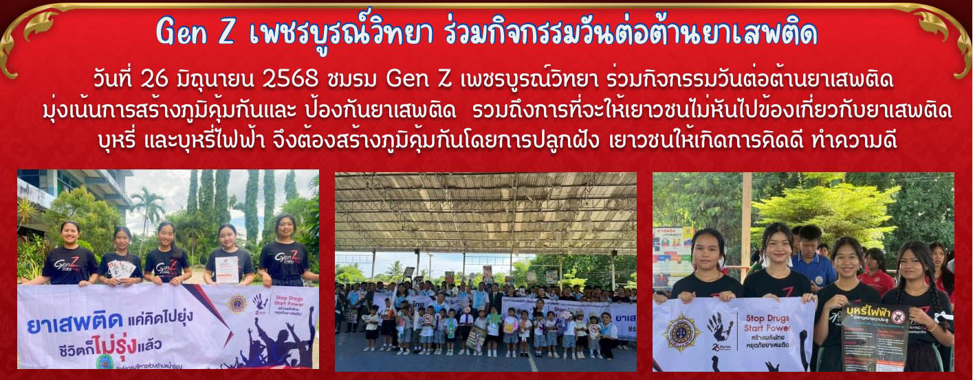 โรงเรียนเพชรบูรณ์วิทยา ร่วมกับ อบต.ตำบลน้ำร้อน ผู้นำชุมชน จัดกิจกรรมต่อต้านยาเสพติด คลิกอ่านเพิ่ม |