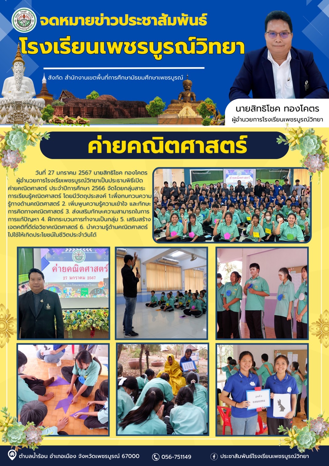 | กิจกรรมเสริมทักษะทางวิชาการ(ค่ายคณฺตศาสตร์ ประจำปีการศึกษา 2566) |